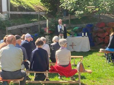 Hinweis zur Ökumene: Pfarrer Gluitz von der katholischen Gemeinde Glottertal sprach ein Grußwort. Er zeigte sich dankbar, dass die unguten früheren Verhältnisse im Wandel sind, und wünschte Gottes Segen für einen gemeinsamen Weg. Als Zeichen der neu gefundenen Gemeinsamkeit überbrachte die kath. Frauengemeinschaft eine selbst hergestellte Altardecke.)