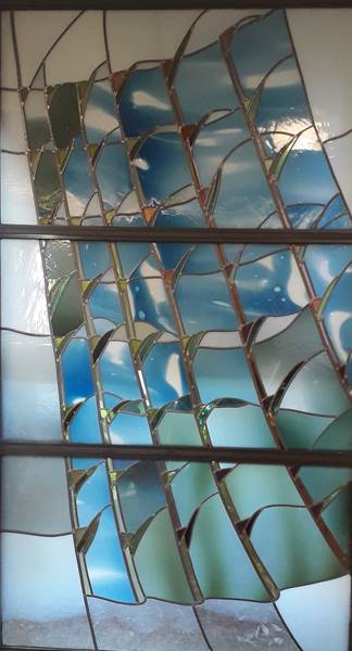 1996 verwirklichte sich ein lang gehegter Wunsch nach einem künstlerisch gestalteten Glasfenster. Regine Schönthaler erläuterte ihre Gedanken zu diesem Fenster