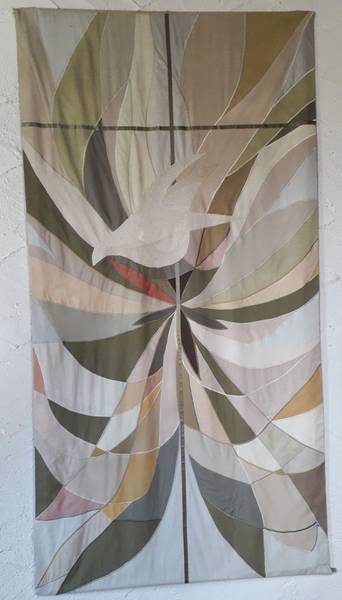 1988 wurde die Künstlerin Gunvor Sandval aus Schweden mit der Erstellung des Wandbehangs mit dem feingeknüpften Kreuz und der Friedenstaube und dem Titel „Lebensbaum“ beauftragt.